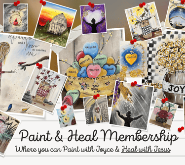My first Paint & Heal was a pivotal experience for me in uncovering the creativity I was given by God - that reflection of being made "in the image" of our Creator. I'm not an artist by any means! However, being a part of the unique membership Joyce offers fanned the flame in my heart of belief and expression. It's a wonderful community, a safe place to let God heal us as we have fun & create.